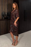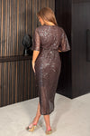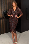 GIRL IN MIND Chelsea Wrap Detailing Midi Dress 3D Floral Brown