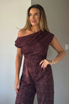 GIRL IN MIND Donna Asymmetric Neckline Jumpsuit Brown Spot