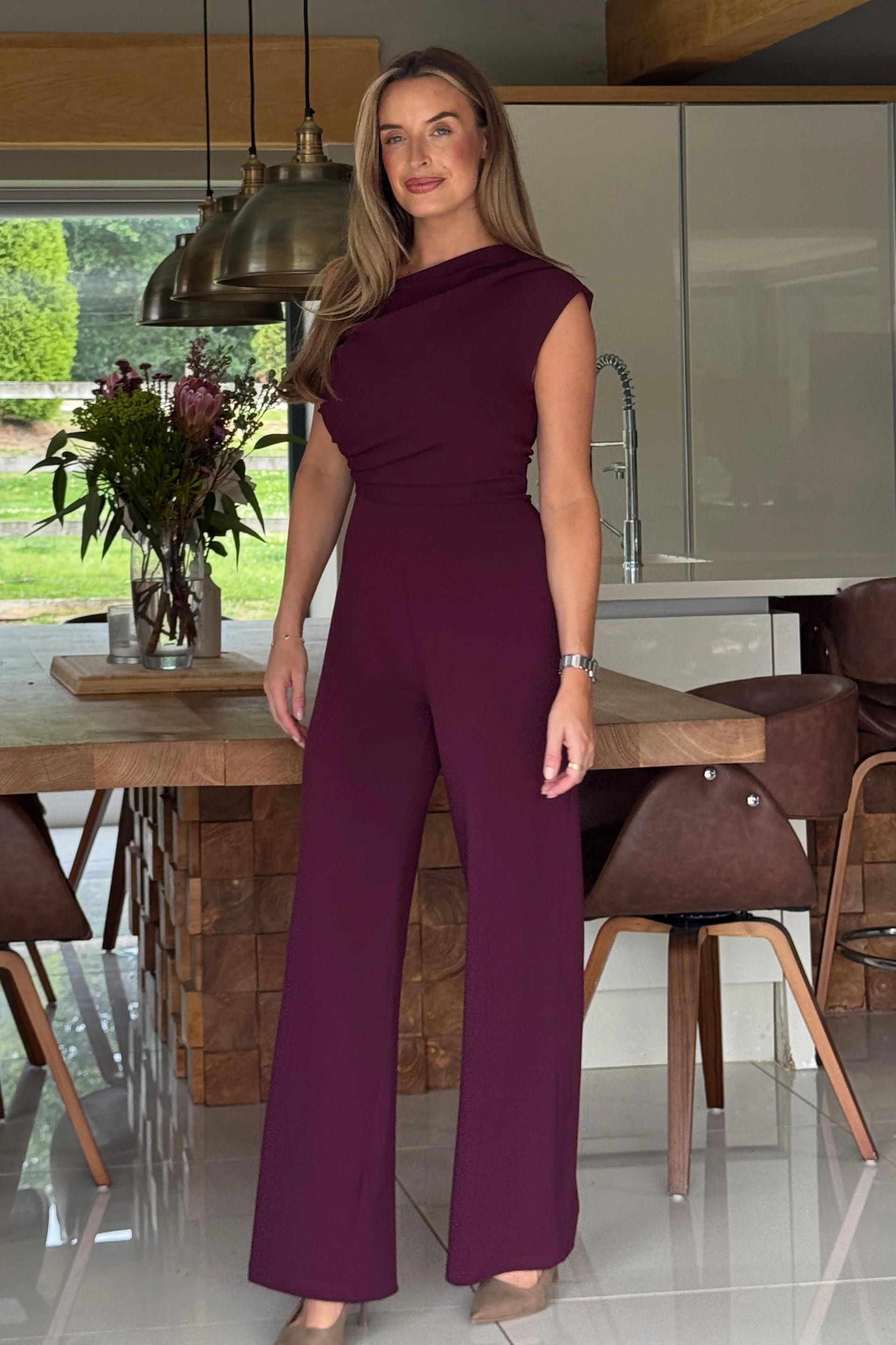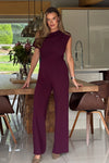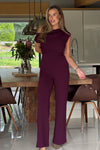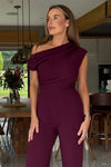 GIRL IN MIND Donna Asymmetric Neckline Jumpsuit Plum