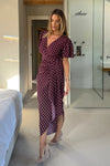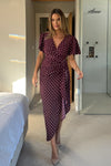 GIRL IN MIND Drew Puff Sleeve Wrap Front Midi Dress Berry Spot