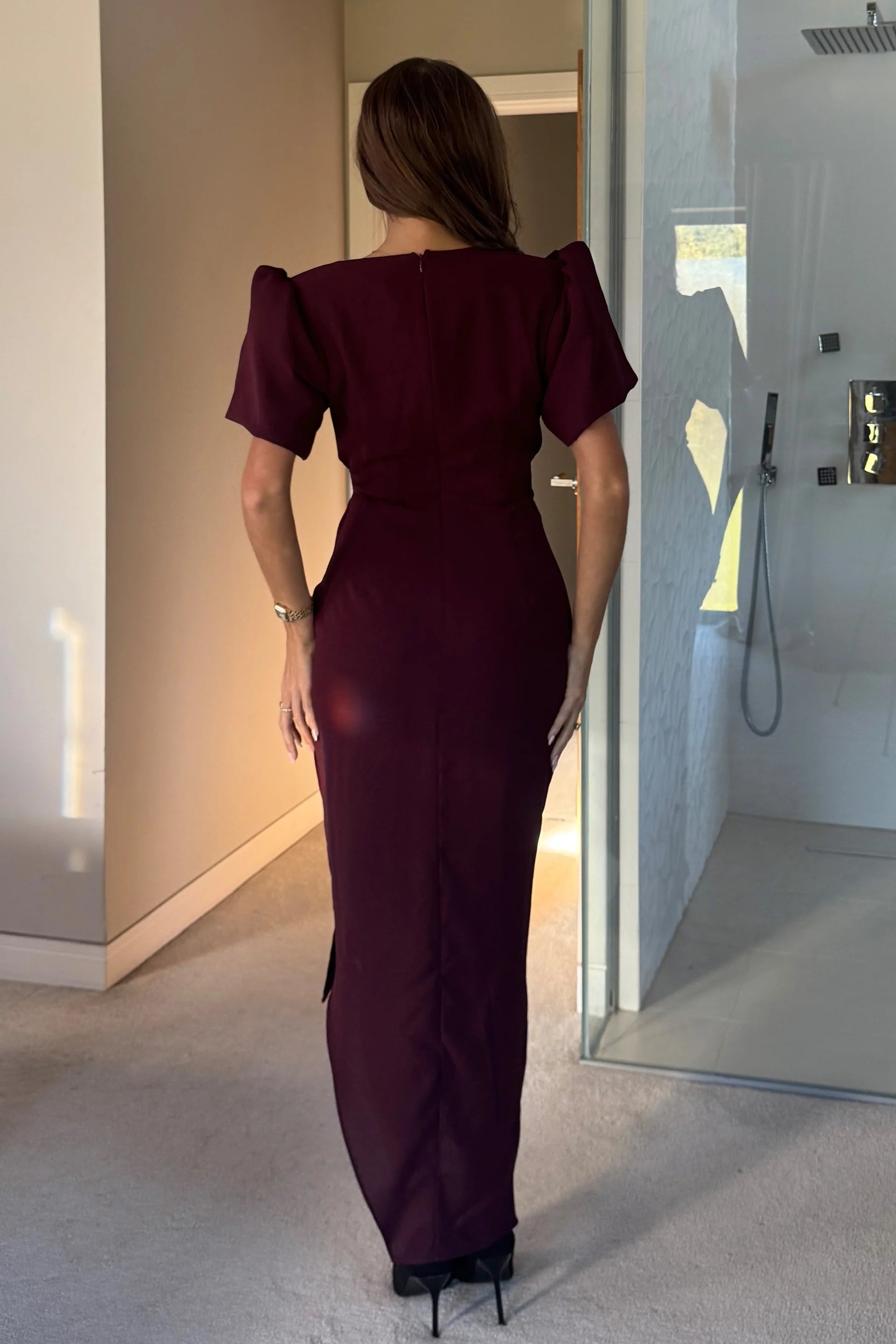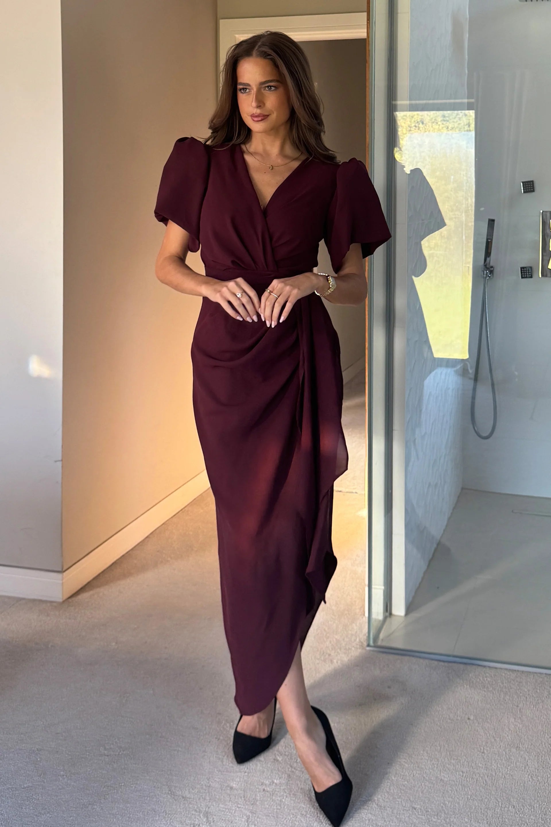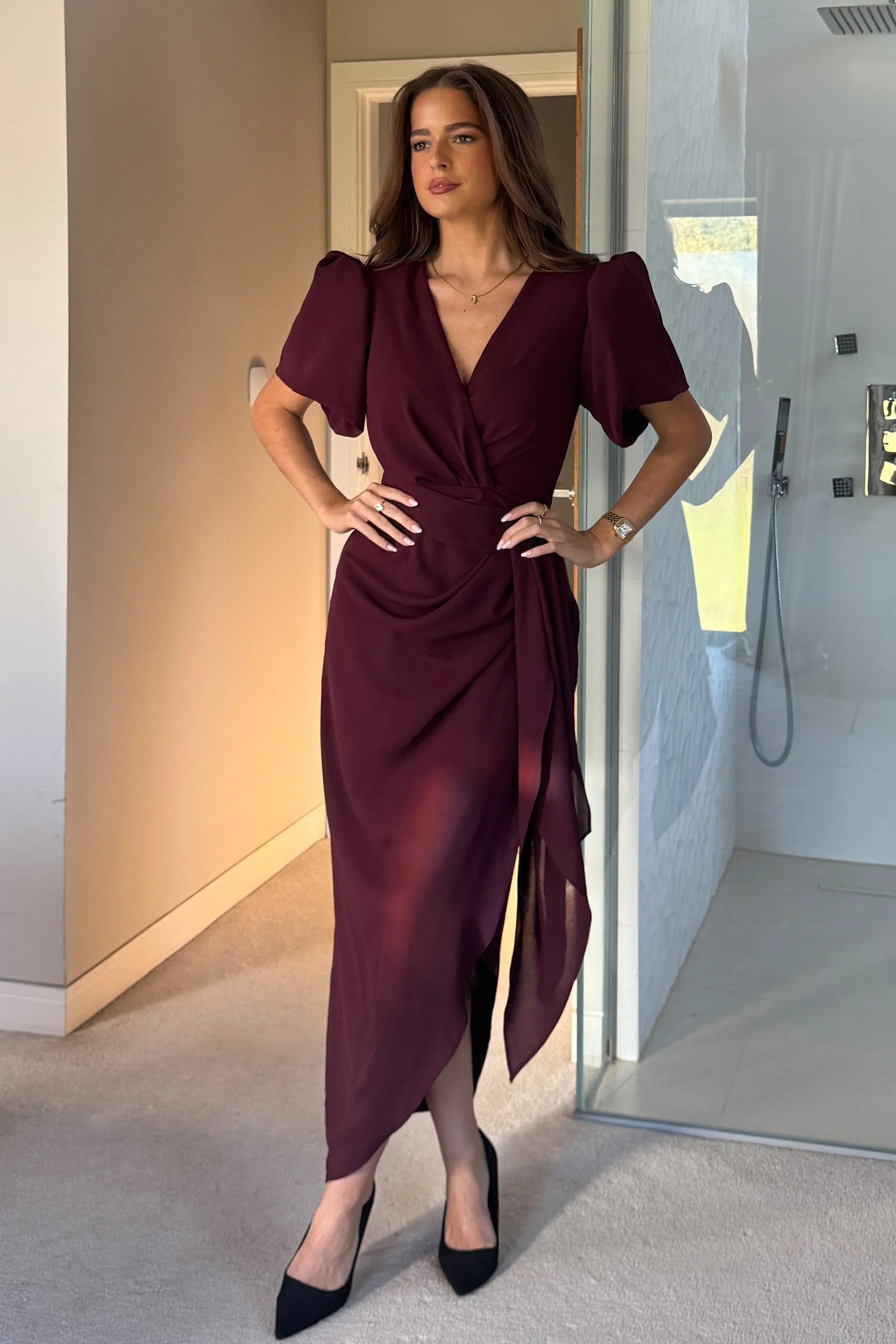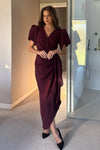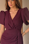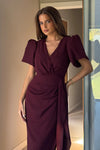 GIRL IN MIND Drew Puff Sleeve Wrap Front Midi Dress Plum