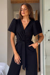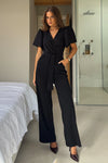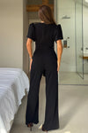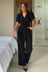 GIRL IN MIND Drew Wrap Neck Puff Sleeve Jumpsuit Black