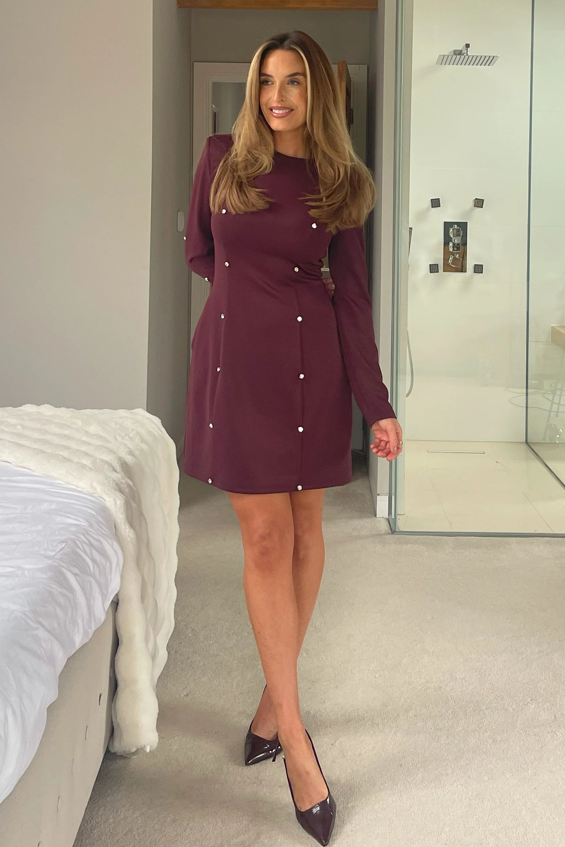 GIRL IN MIND Morrigan Studded Long Sleeve Mini Dress Plum