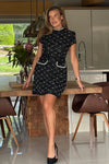 GIRL IN MIND Nelly High Neck Beaded Tweed Mini Dress Black