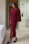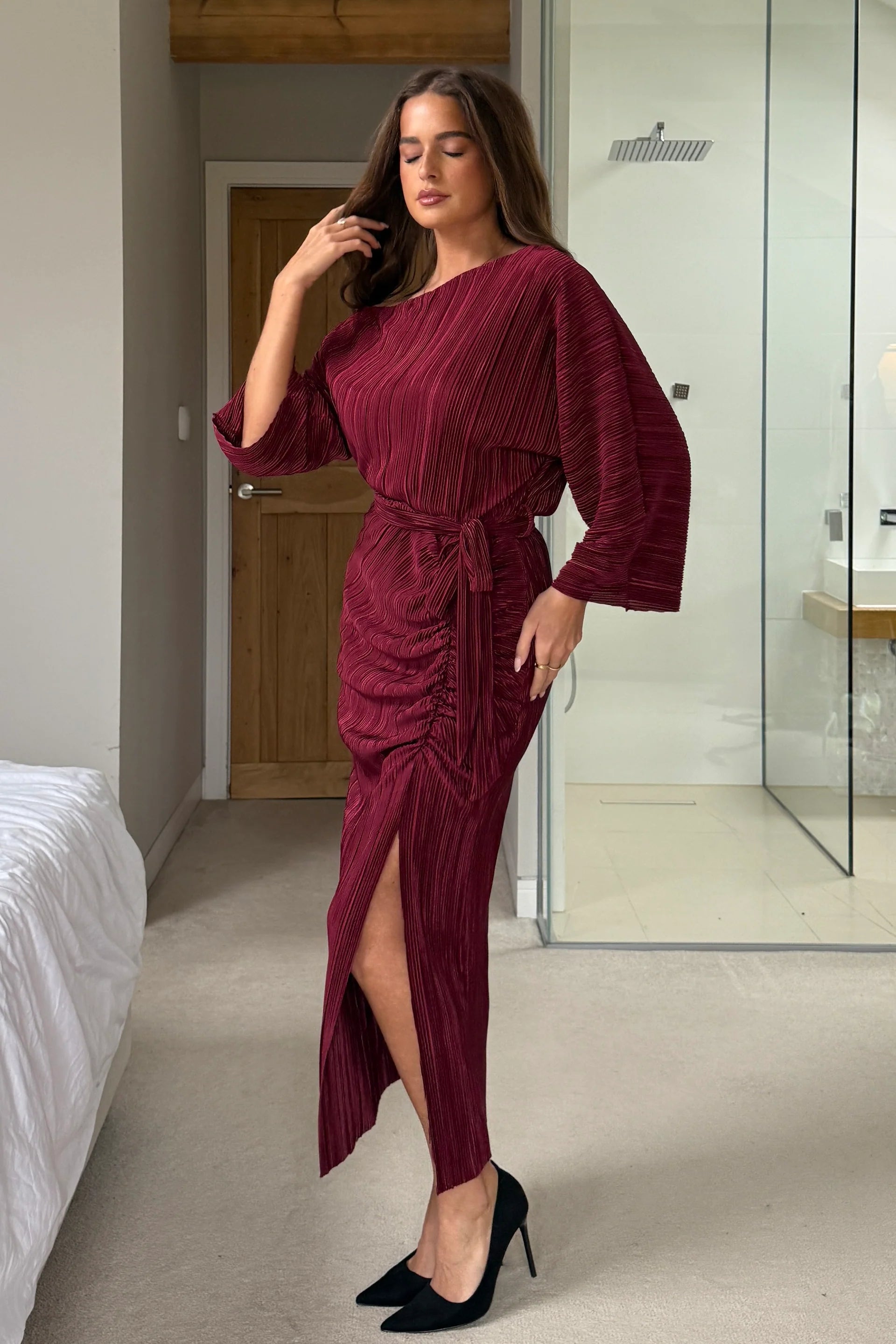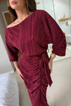GIRL IN MIND Vendy Off The Shoulder Ruched Detail Midi Dress Berry