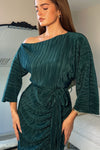 GIRL IN MIND Vendy Off The Shoulder Ruched Detail Midi Dress Emerald