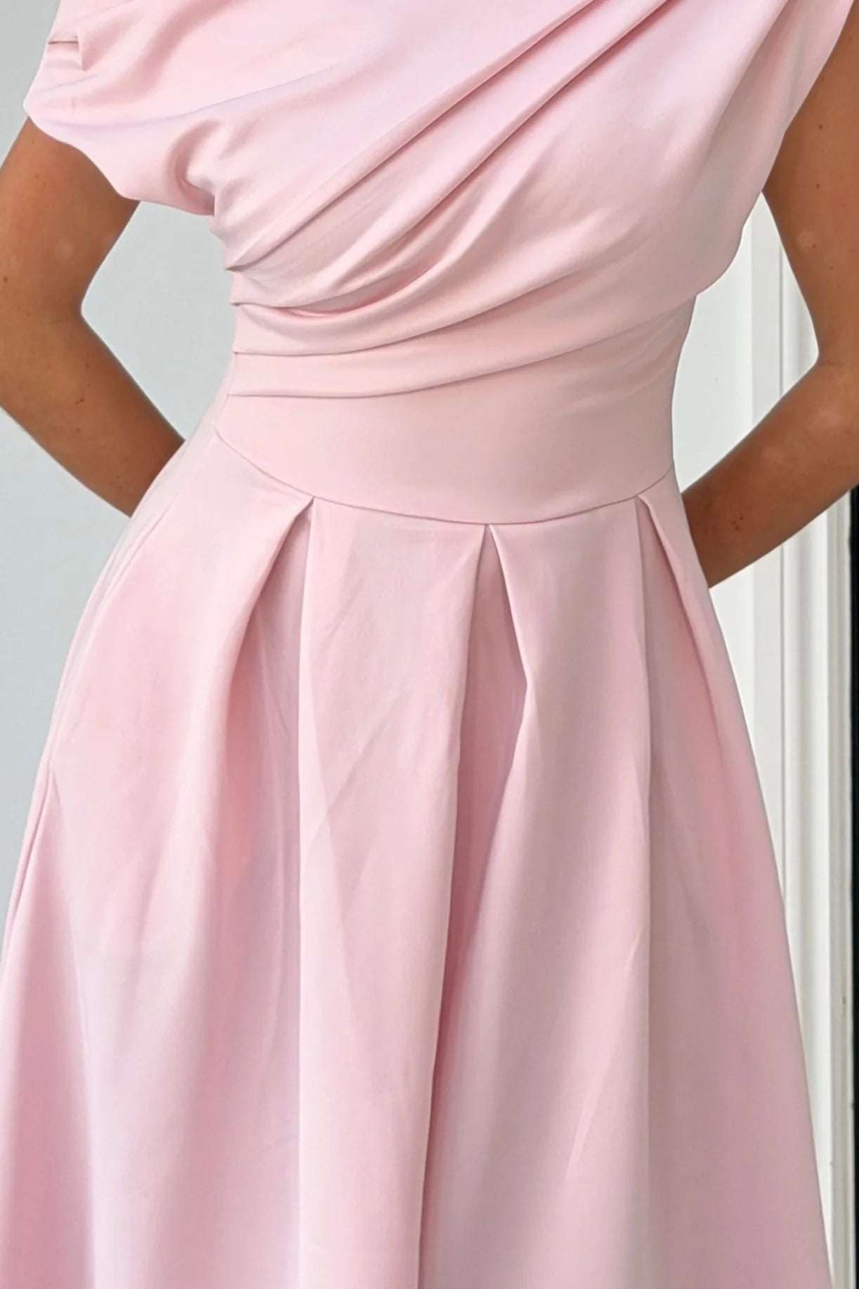 GIRL IN MIND Betty Asymmetric Midi Dress Pink